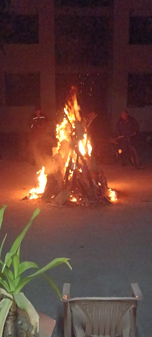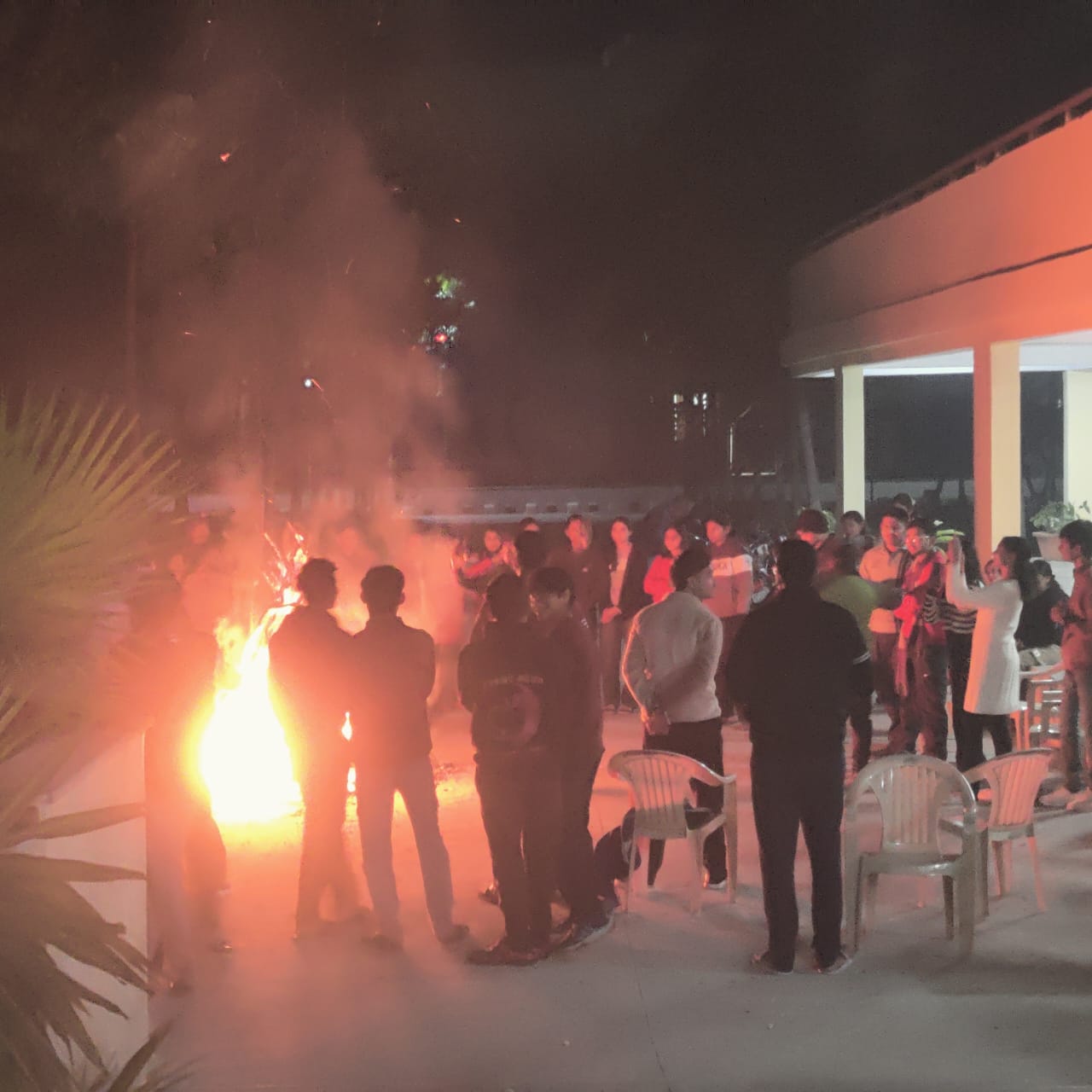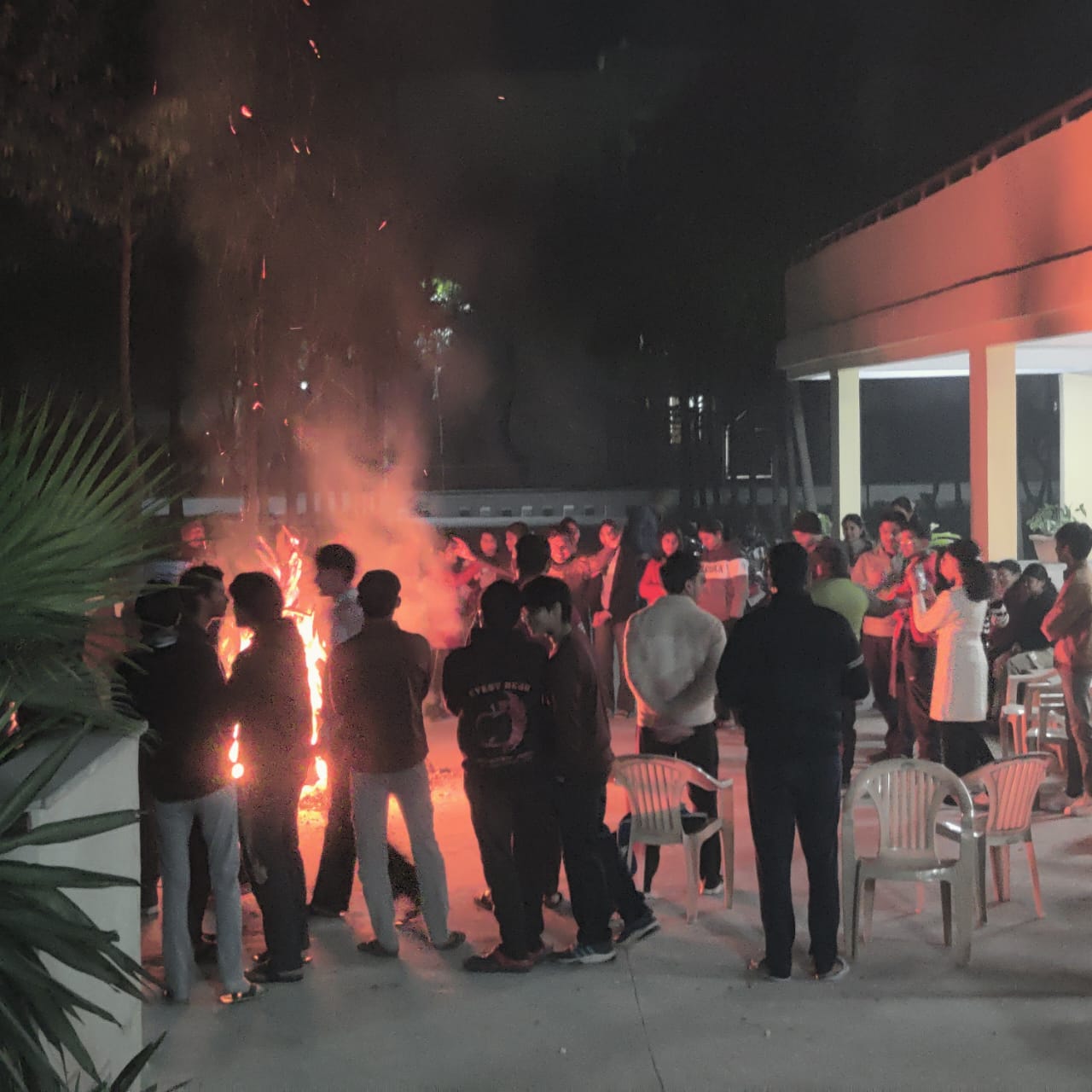 The glowing bonfire became the center of the celebration as students gathered around, offering peanuts, jaggery, and popcorn while enjoying festive music and laughter. The chilly winter night was brightened by the warmth of the fire and the spirit of unity among students from diverse backgrounds.