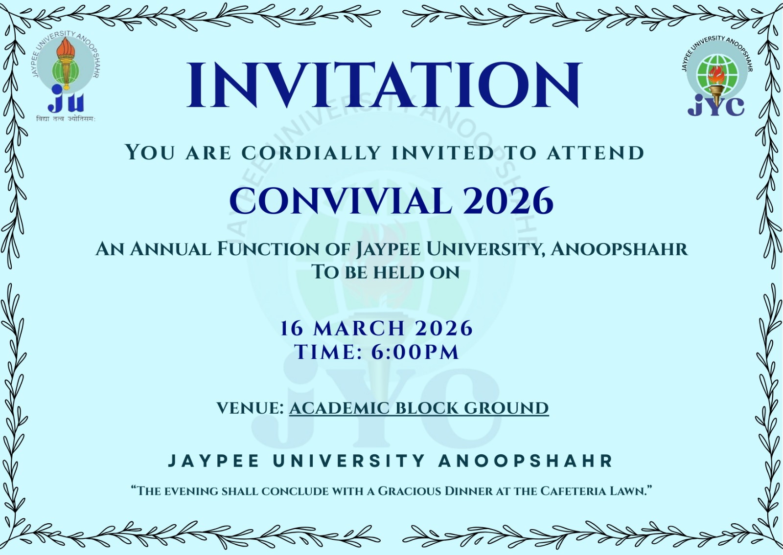 The excitement across Jaypee University, Anoopshahr grows as preparations for Convivial 2026 gather momentum. With dedication and collaborative effort, students and organizers are meticulously planning an event that celebrates creativity, culture, and artistic expression.