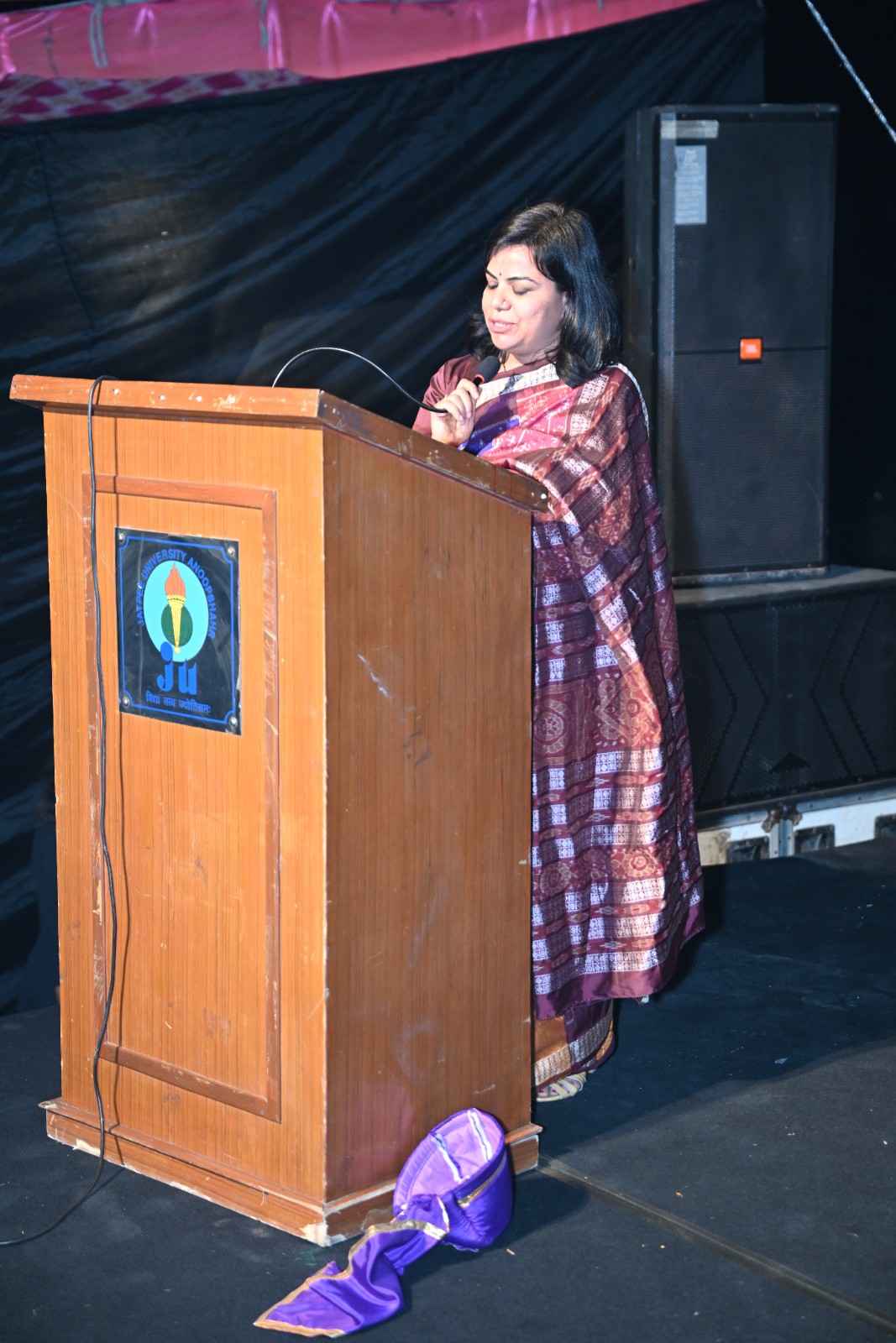 The event commenced with the traditional lamp-lighting ceremony before Goddess Saraswati, graced by the Hon’ble Vice Chancellor Prof. Rajeev Saxena, Registrar Mr. Sanjay Agrawal, Dean Dr. Nishant Srivastava, Jaypee Youth Club Head Dr. Rakhi Pandey, along with other distinguished guests.
