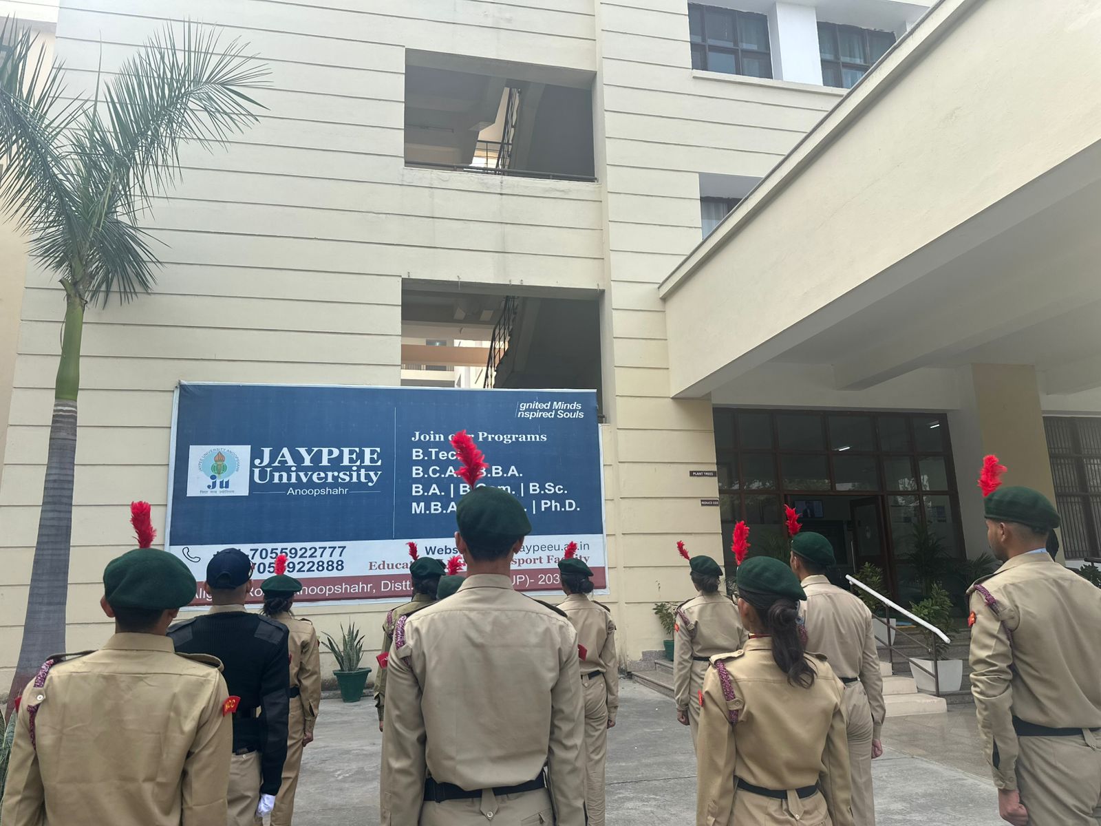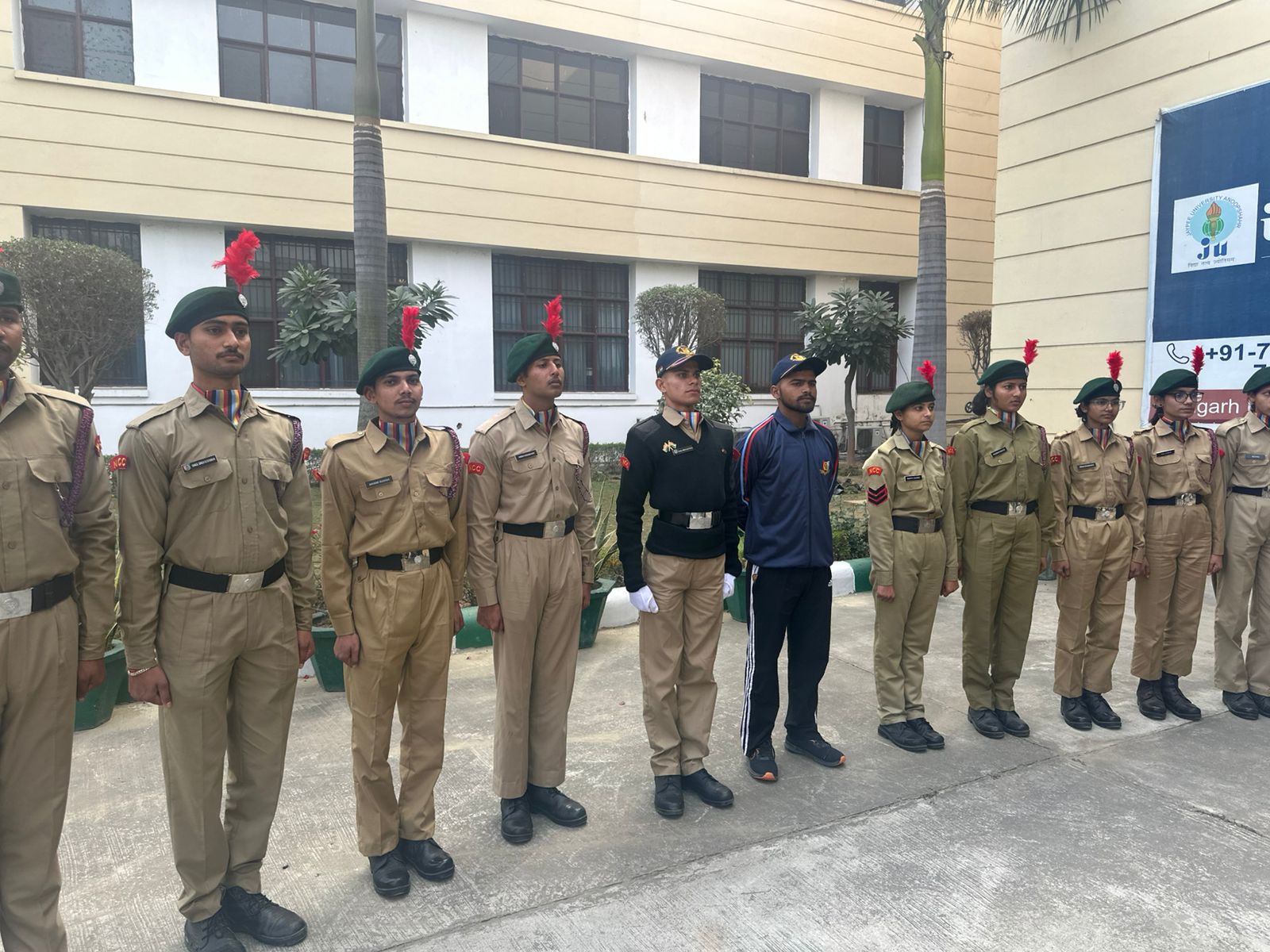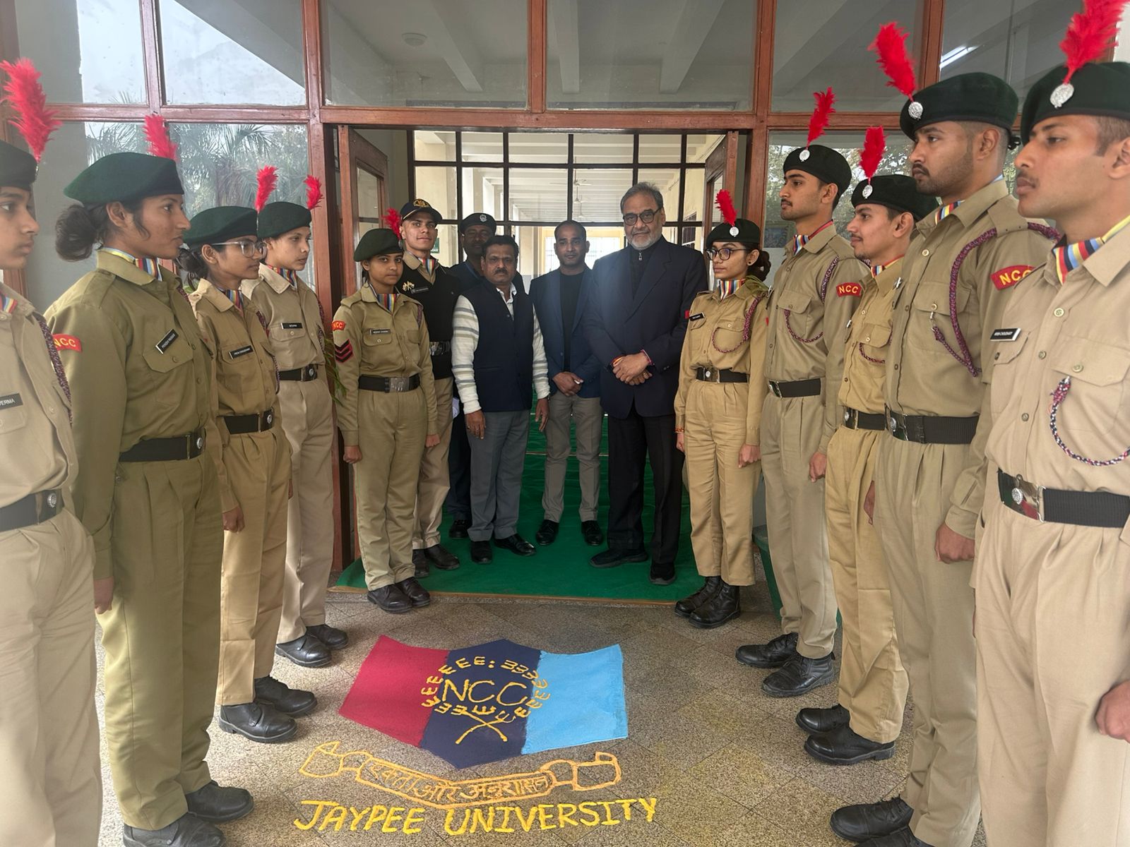 The National Cadet Corps (NCC) Unit, 41UP BN NCC, has been established at Jaypee University in Anoopshahr, highlighting the values of discipline, unity, and service. The University has been allocated cadet positions for the Senior Division (SD) and the Senior Wing (SW). All the allocated seats are enthusiastically filled after a thorough selection process (viz., written test, physical test, and interview). At the University level, the NCC plays a vital role in shaping responsible citizens and future leaders through a program of institutional training, outdoor activities, and community service.