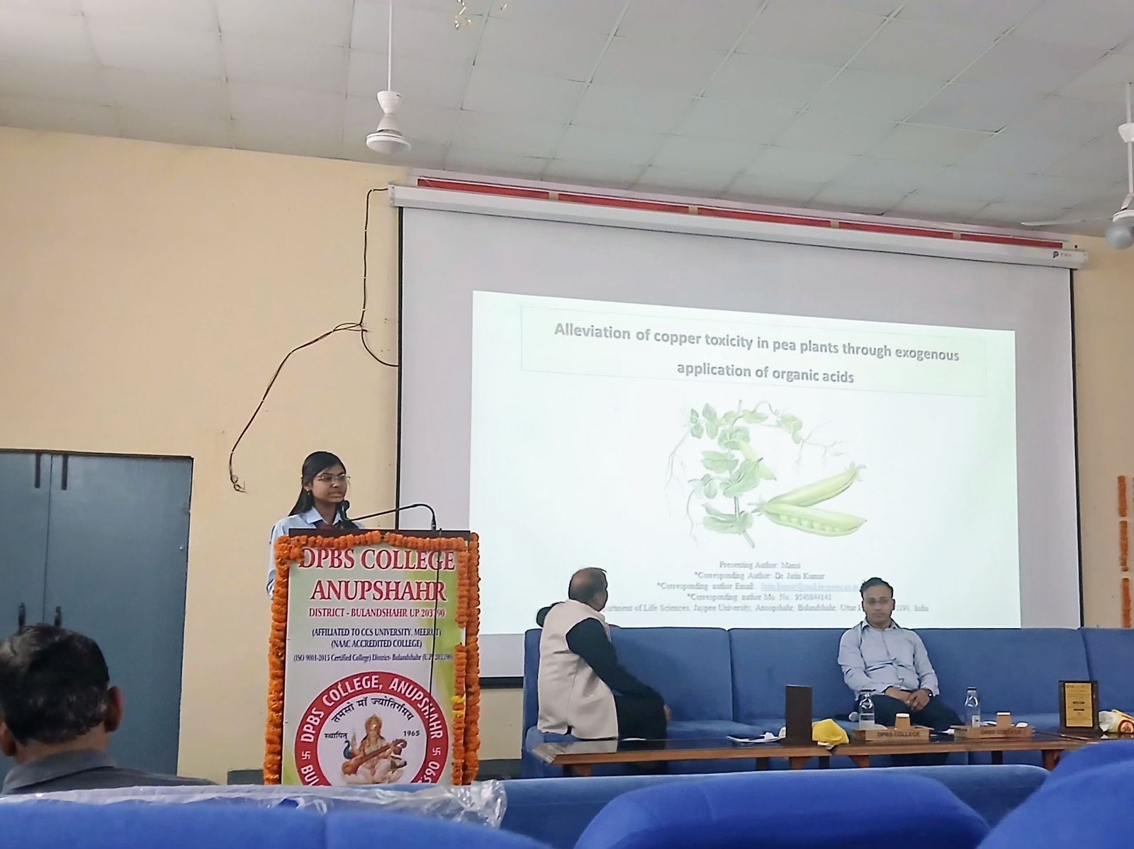 Ms. Mansi and Ms. Anjali Saini, B.Sc. students from the Department of Life Sciences at Jaypee University Anoopshahr, presented their research work through oral presentations at the National Seminar on “Environmental Sustainability in India: Challenges, Innovations and Practices.” The seminar was held at DPBS College on 11–12 April 2026.